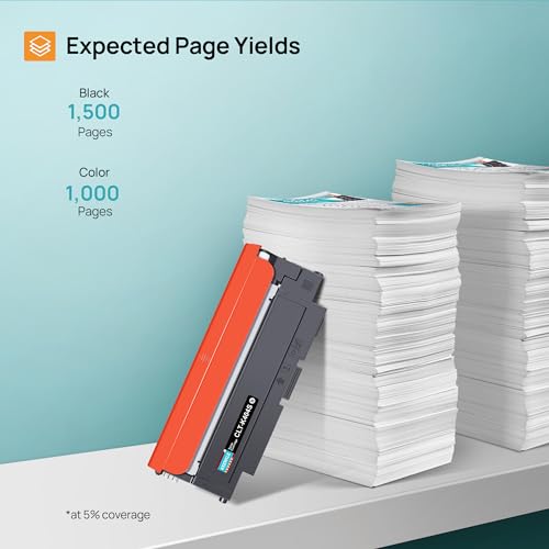 2.Seitenausbeute: 1,500 Seiten für CLT-K404S Schwarze Toner, 1,000 Seiten pro CLT-C404S CLT-Y404S CLT-M404S Farbtonerkartusche (bei 5 % Deckung)
