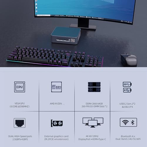 Ultra High-efficiency Mini PC : The Mini PC comes with powerful processor New AMD Ryzen 5 5600H(6 Kohlenstoff/12 T, up to 4.2GHz), pre-loaded Windows 11,Offer smooth and fast experience for gaming, multitasking, video editing