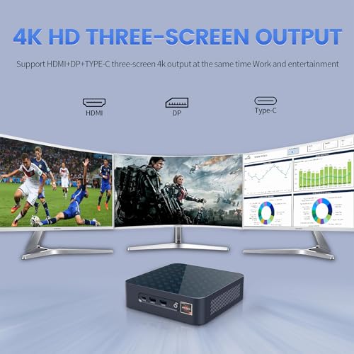 Kooperation Three-screen 4K HD Anzeigegerät :The mini desktop computer equipped with DP/HDMI(4K@60Hz)/Zwischenblatt-Kohlenstoff, makes it easy to connect three monitors at the same time, expand working Windows, mirror content, or expand a single window across multiple monitors