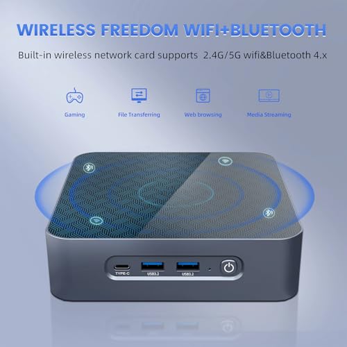 Tidal Cold system and silent fan: The mini pc is designed with cold air system inside, and the case is designed with hollow holes, that dissipate the heat generated by the operation of the computer, the fan runs at a low noise level, which won’t interfere with the gemein work
