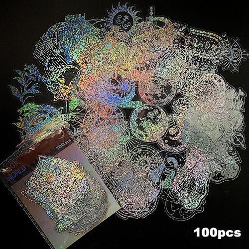 Kireida® 100 Stück große holografische Aufkleber, glitzernde, glänzende, schillernde, transparente Harzaufkleber für Scrapbook, Junk Journal, Bullet Journals, Planer, Laptops
