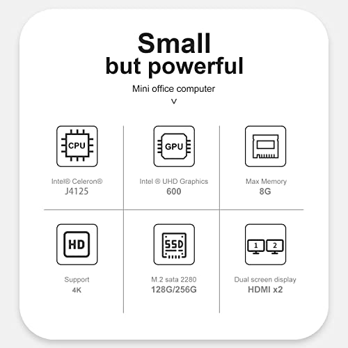 Reibungsloses Arbeits- und Spielerlebnis: Unter Einsatz von dem Intel Gemini Lake Refresh J4125 Prozessor (bis zu 2,7 GHz), 4 Kerne 8 Fäden, 8 GB RAM. und Intel HD Grafik 5500. Unterstützt Win10Pro 64-Bit und 8 GB RAM Betriebssystem. Die leistungsstarke Hardware macht den Betrieb reibungsloser und stabiler
