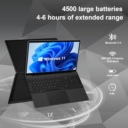 ❇【Niedriger Batterieverbrauch】Das Notebook verwendet die neuesten wissenschaftlichen Technologien, um den Stromverbrauch zu absenken, was die Effizienz der Batterie erheblich verbessert. Der 4500 mAh Lithium-Polymer-Akku für Windows 11 Home Laptop ermöglicht es dem Laptop, lange inaktiv zu bleiben, sodass Sie mit dem Unternehmen in Kontakt bleiben können. (Um die Lebensdauer des Akkus zu verlängern, empfehlen wir die Verwendung mit einem Ladegerät)