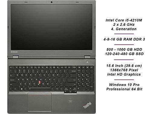 Lenovo ThinkPad T540p Business Notebook, Intel i5 2 x 2.6 GHz Prozessor, 16 GB Arbeitsspeicher, 240 GB SSD, 15.6 Zoll Display, 1366×768, Cam, Windows 10 Pro, B0M (Generalüberholt)