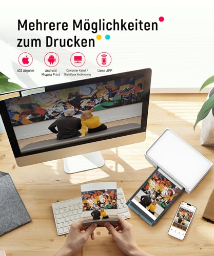 [KOMPATIBEL MIT MEHREREN GERÄTEN] Der Liene Sofortbilddrucker ist für jeden angebracht. Er ist kompatibel mit iOS & Android Smartphones, Laptops, Tablets und Desktops usw. Die Wi-Fi-Verbindung ermöglicht es 5 Geräten, sich gleichzeitig mit diesem kompakten 10 x 15 Fotodrucker zu verbinden. Sie können also Ihre Freunde und Familien einladen, um gemeinsam das Glück zu teilen. Neben der drahtlosen Verbindung unterstützt er bekannt als den Ausgabe über die USB-C-Kabelverbindung mit Computern.
