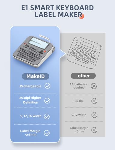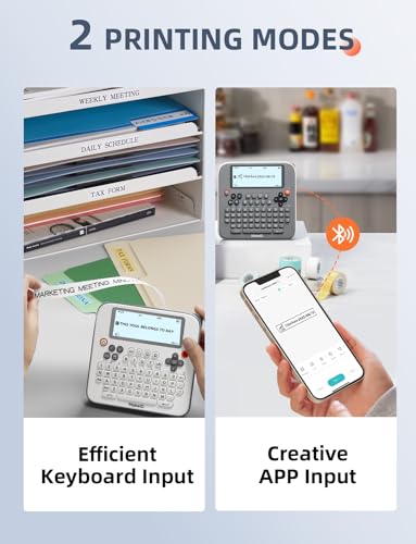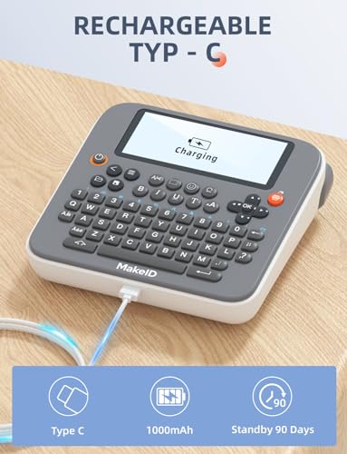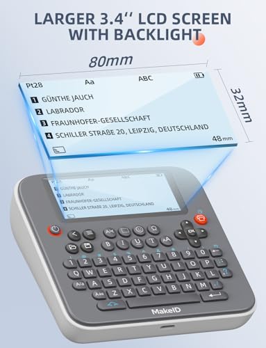 Makeid E1 Beschriftungsgerät Bluetooth Mini Etikettendrucker Handgerät Etikettiergerät selbstklebend mit QWERTY Tastatur 4 Zeilen Label Maker Ideal für Büro