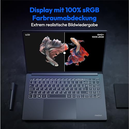 Mattes 40,6 cm (16″) QHD+-Anzeigegerät per 100 % sRGB, 120 Hz im Übrigen einer Entlassung von 2.560 x 1.600 Pixeln. Fingerabdrucksensor. Backlit Keyboard