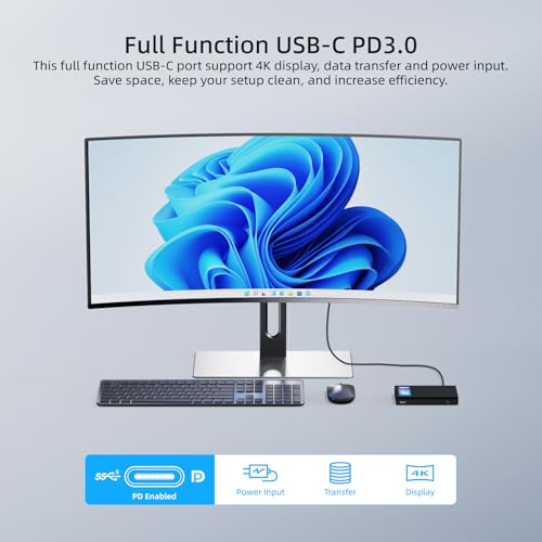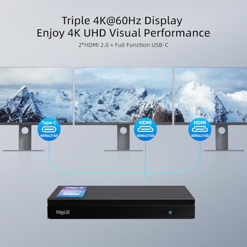 „【Dreifach-4K-Display und besoffen funktionsfähiger USB-C】Maximieren Sie Ihr visuelles Erlebnis mit drei Displays, die von der Ultra-HD-Grafikkarte (4K bei 60 Hz) unterstützt werden. Zwei HDMI-Anschlüsse und ein besoffen funktionsfähiger USB-C ermöglichen gleichzeitige dreifache Anzeige und berichtigen Ihre Arbeitsleistung. Der USB-C-PD3.0-Anschluss unterstützt 4K-Anzeige, Datentransfer und Stromversorgung, reduziert Kabelgewirr und optimiert Ihren Arbeitsbereich. “