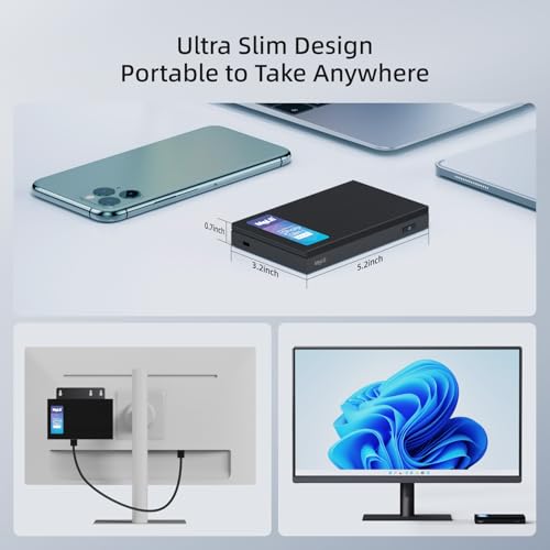 【Kompakte Größe und Vesa-Montage】Mit einer Größe von immerhin 5,2 x 3,2 x 0,7 Zins ist dieser ultraflache und tragbare Mini-PC für jeden Weltraum passend. Die im Lieferumfang enthaltene Vesa-Halterung ermöglicht die Monitor-Montage und spart Platz und sorgt für Ordnung auf Ihrem Schreibtisch.