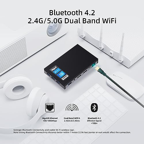 Funktioniert einwandfrei und ohne Verzögerung – Der Mikro-PC verfügt über eine integrierte Gigabit-Ethernet-Buchse, die ein wenig bei der Übertragungsgeschwindigkeit hilft. 2,4 G / 5 GHz AC Dual Band WiFi, andienen eine stabile Verbindung in High-Speed, schnell genug zugunsten Streaming und Lichtarbeit.