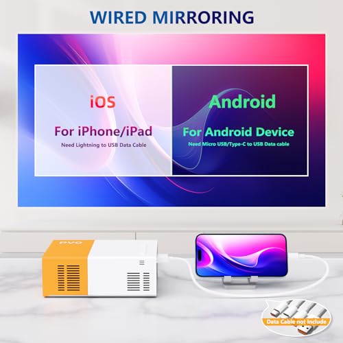 [💕Wired Screen Mirroring💕] Verbinden Sie einfach Ihr Telefon oder Tablet mit dem Projektor mit Datenkabel. Es ist einfach und bequem, den Bildschirm Ihres Telefons oder Tablets auf den Projektor zu spiegeln.