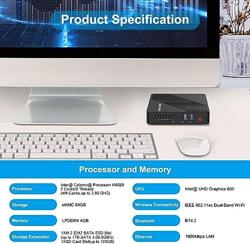 【Intel Celeron N4020 Prozessor】Der Mini-PC ist mit Intel Celeron N4020 Prozessor (bis zu 2,8 GHz) und UHD Graphics 600 ausgestattet. Allerdings hohe Leistung und geringer Stromverbrauch.
