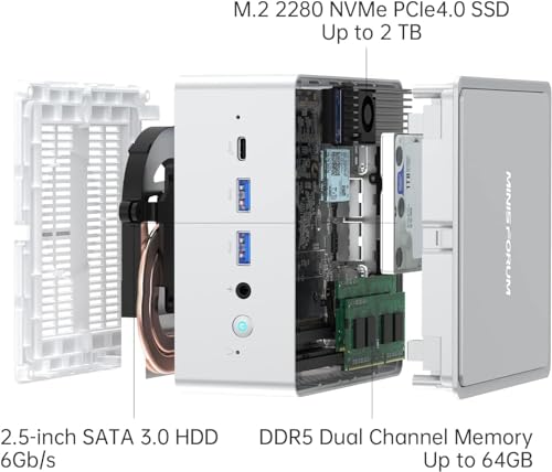 【DDR5-RAM und PCIe4.0-SSD】 Installiert mit 32GB Dual Channel DDR5 RAM (2x16GB), NPB6 unterstützt die Erweiterung auf 64GB RAM. Ausgestattet mit einer M.2 2280 512 GB PCIe4.0 SSD hat der NPB6 die Können, eine ältere (2,5 Ertrag) SATA SSD oder HDD der älteren Jahrgang (2,5 Ertrag) zu montieren und verwahrlost nicht im Überfluss.
