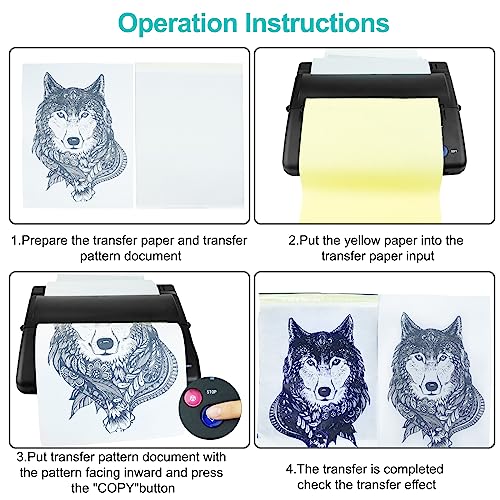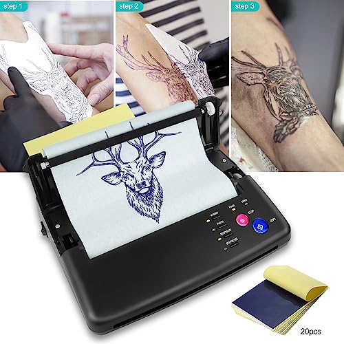 【Einfach zu Bedienen】Diese Tattoo Transfer Maschine für Tattoos benötigt keine Tinte und keine Ersatzteile. Einfacher, zuverlässiger Tattoo Drucker, der Ihr Leben einfacher macht.Paket Enthält: 1x Tattoo Transfermaschine,1x Bedienungsanleitung,1x EU Netzkabel,20x Tattoo Transferpapier.
