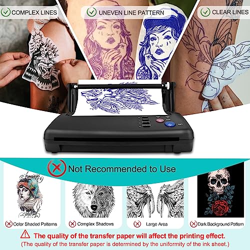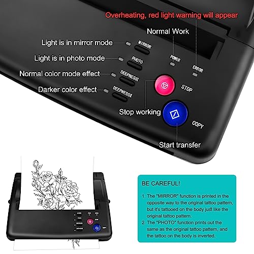 【Hochwertige Tattoo Transfer Maschine】Unser Tattoo Thermodrucker hat eine schnelle Transferdruckgeschwindigkeit, geringes Geräusch, geringe Hitze und stabile Leistung.Diese Tätowiermaschine als eine optimale Votum für Tätowierer, um keine komplizierten Handbemalungen vorzunehmen.