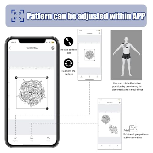 【Vielseitig】Dieser Tattoo-Schablonendrucker ist mit einer Vielfältigkeit von Geräten kompatibel, einschließlich Smartphones und Computern, und gibt Ihnen die Adaptivität, Designs jeglicher einer Vielfältigkeit von Quellen zu übertragen. Egal, ob Sie an einem benutzerdefinierten Design bearbeiten oder ein vorhandenes drucken, mit dieser tattoo printer sind Sie bestens gerüstet.
