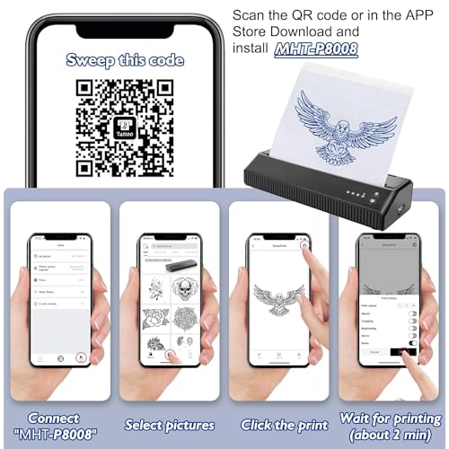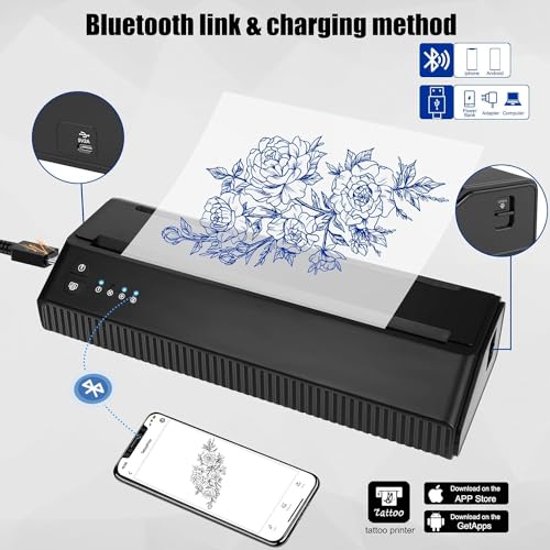 MOKOHOA Stencil Drucker,Tattoo Drucker Thermodrucker Tattoo,Tattoo Transfer Maschine Tattoo Stencil Printer,mit 10pcs Tattoo Transferpapier für DIY Tattoo,für IOS Android PC,Stencil Drucker Kabellos