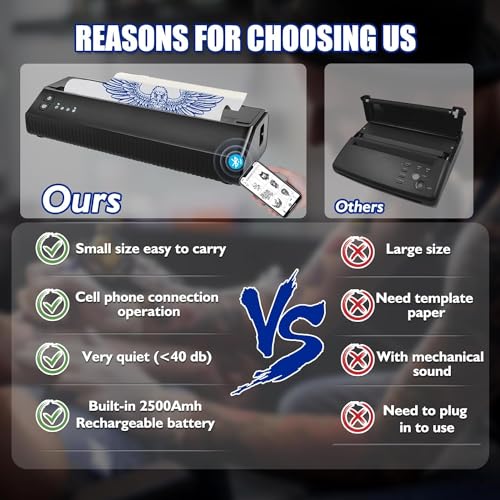 【Einfach zu Bedienen】Die intuitive Benutzeroberfläche und das benutzerfreundliche Design des Tattoo Kopierer Thermal Stencil Maker machen die Verwendung einfach, selbst für diejenigen, die neu im Tätowieren sind.Paket Enthält: 1x Tattoo Transfermaschine,1x Bedienungsanleitung,1x USB Kabel,10x Transferpapiers.