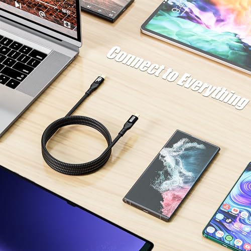 BREITE KOMPATIBILITÄT: USB 4 Kabel hat starke Kompatibilität. USB C auf USB C Kabel ist kompatibel mit Thunderbolt 4/Type-C Geräten und abwärtskompatibel mit Thunderbolt 3. Es ist aka abwärtskompatibel mit USB 3.2/3.1/3.0/2.0 Geräten.USB 4.0 unterstützt aka DisplayPort Archaisch Mode und Option Standards. Er kompatibel mit iPhone 15/Plus/Pro/Pro Max, iPad Pro, MacBook, Samsung Galaxy S24/S23/S22/S21Ultra, SSDs, Type-C-Laptops, Monitore, Hubs, Docks, GaN Batterieladegerät und Option USB-C Geräte