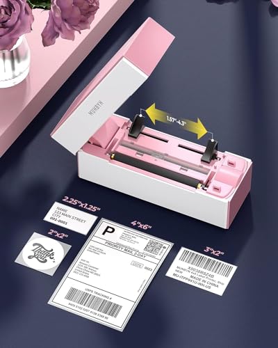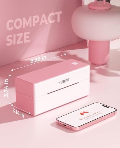 MUNBYN Bluetooth Etikettendrucker Label Drucker 4×6 Thermodrucker DHL UPS Versandetiketten Drucker Thermal Printer ettiketiergerät für Versandpakete Kompatibel mit Ebay Amazon Etsy Wish, 129, Rosa