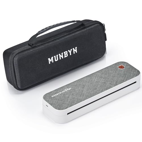 MUNBYN Bluetooth Mobiler Drucker A4 mit Aufbewahrungstasche Portable Drucker A4 tragbarer Thermodrucker Mini Drucker 210x297mm für Unterwegs Hause Unterstützt iOS Android Grau