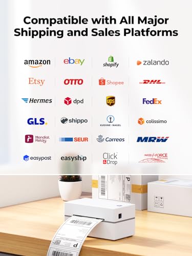 【Breite Kompatibilität】Der Thermal Printer ist mit Amazon, Shopify, eBay, Etsy, UPS, FedEx, Royal Mail, DPD, Hermes und anderen wichtigen partnern kompatibel. Darüber hinaus akzeptiert der Drucker Thermoetiketten mit einer Breite von 1,57″ bis 4,3″ (40 mm bis 110 mm), einschließlich Briefumschlagetiketten, Paketetiketten, Adressetiketten, Strichcodeetiketten sowie Heim- und Büroetiketten. *Hinweis: Windows-Systeme mit ARM-CPUs werden nicht unterstützt.