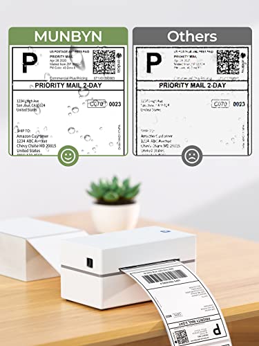 MUNBYN DHL Etikettendrucker Bluetooth, Label Printer 4×6 Versandetiketten Drucker, Thermodrucker Labeldrucker für Shopify Zalando Ebay Etsy Amazon DPD UPS, mit 25 Etiketten, ITPP130B Weiß
