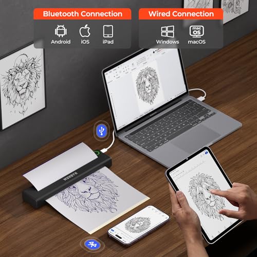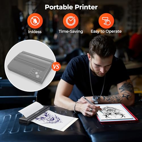 [Klare Druckqualität]: Der kabellose Stencil Drucker Tattoo verwendet fortschrittliche Thermodrucktechnologie und gewährleistet klare Drucke. Er überzeugt in der Visualisierung neuer traditioneller Stile, Schriften, Totems, Skizzen, realistischen Stilen und Dotwork-Tattoos und gibt jedes Detail nochmal. Lassen Sie Ihre Arbeiten lebendig erscheinen und demontieren Sie das Vertrauen und die Anerkennung Ihrer Kunden.