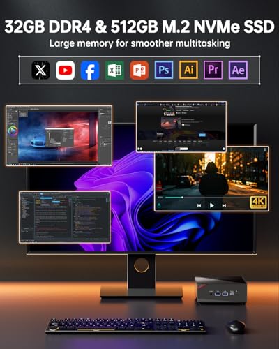 【4K Triple Display & Type-C】AM06PRO Erleben Sie die Leistung Triple Display mit 4K HD-Ausgabefähigkeit über HDMI, DP und Typ-C Anschlüsse, die alle von der leistungsstarken АMD Radeon Graphics 7 Core 1800MHz angetrieben werden. Egal, ob Sie im Internet surfen, Microsoft Office verwenden oder anspruchsvolle Adobe PR und PS-Anwendungen verarbeiten, der Mini-PC ist in der Lage, eine hervorragende Bildqualität zu versorgen und Ihre Arbeitseffizienz und Ihr Spielerlebnis auf einfache Weise zu verarbeiten.