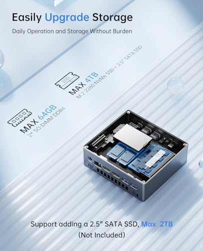 【Großer Speicher für die Gesamtheit Ihre Anforderungen】 Der Mini-PC NiPoGi CK10 verfügt über einen Hochgeschwindigkeits-Dual-Channel-Speicher mit 16 GB DDR4 und 3200 MHz (erweiterbar auf 64 GB) und einen M.2 2280 NVMe PCIe3.0 SSD-Speicher mit 512 GB, sodass ein kleiner PC betrieben werden kann mehrere Hochleistungsoperationen gleichzeitig. Mit 2 M.2-SSD-Steckplätzen, erweiterbar auf bis zu 2 TB, unterstützt die Erweiterung der 2,5-Zins-SATA-SSD/HDD-Festplatte.