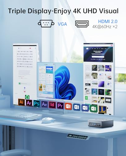【Starke WiFi 6-Wireless-Optionen und vielseitige Schnittstelle】Der Mini-Computer ist mit WiFi6- und Bluetooth 5.2-Technologie ausgestattet, wodurch Sie allesamt einfach eine stabile drahtlose Verbindung herstellen und Ihre akademische Arbeit und Ihr Leben noch mehr genießen können. Der Mikro-PC CK10 verfügt über 4 x USB 3.0, 1 x USB-C (im Unterschied dazu Datenübertragung), 2 x HDMI, 1 x VGA, 1 x Gigabit LAN, 1 x Audioeingang/Mikrofon und 1 x DC-Buchse. Sie können mehrere Geräte denn Monitore, Mäuse und Tastaturen anschließen.