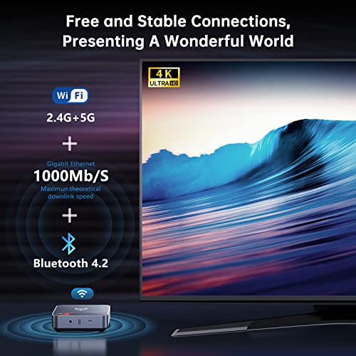 Erfüllt aus Anforderungen: Der Desktop-Mini-PC verfügt qua einen RJ-45-Gigabit-Ethernet-LAN-Anschluss, der Gigabit-Dateiübertragungsgeschwindigkeit unterstützt. Die neueste drahtlose 2,4- und 5-GHz-Dualband-802.11ac-WLAN-Konnektivität liefert Geschwindigkeiten von bis zu 1300 Mbit/s qua 5 GHz und ermöglicht Ihnen ein doppelt so schnelles Interneterlebnis beim Surfen, Streamen und Spielen.