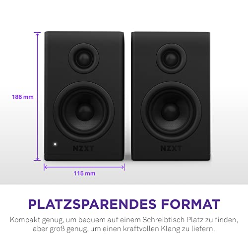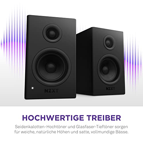 NZXT Relay PC-Gaming-Desktop-Lautsprecher – AP-SPKB2-EU – Full-Range-Sound – 80 Watt – Hoher Dynamikbereich – Seidenkalotten-Hochtöner – Glasfaser-Tieftöner– Schwarz