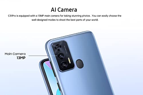★【AI-Kamera:】Das C31 PRO ist mit einer 13MP-Hauptkamera auf der Abseite ausgestattet, mit der Sie erstaunliche Fotos resorbieren können. Sie können ganz einfach die gut durchdachten Modi detachieren, um die besten Teile Ihrer Welt aufzunehmen. Mit der 5MP-Selfie-Kamera auf der Vorderseite können Sie Ihr Selbstvertrauen mit Freunden und Familie teilen.