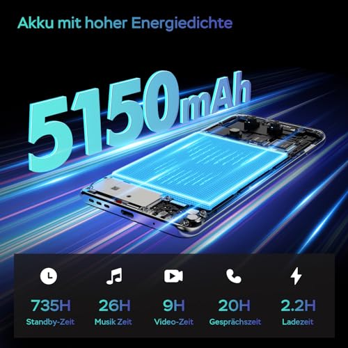 🔋 Enorme Akkukapazität ➣ Der leistungsstarke 5150mAh Akku ist perfekt abgerundet mit einem intelligenteren Prozessor, um den Energieverbrauch zu steuern, ohne Sie auszubremsen. Er hält im Standby-Modus bis zu 240+ Stunden und ermöglicht bis zu 20 Stunden Gesprächszeit. Die Akkulaufzeit ist beeindruckend. Nutzen Sie Ihr OUKITEL C37 Smartphone den ganzen Tag lang, ohne sich Gedanken über einen leeren Akku machen zu müssen.
