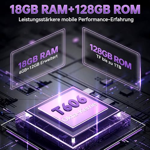 18GB RAM + 128GB ROM & Octa-Core-Prozessor:Das OUKITEL C51 handy ohne vertrag erweitert den ursprünglichen 6GB RAM um 12GB virtuellen Speicher, wodurch die Geschwindigkeit um 25% erhöht wird; Die TF-Karte kann auf bis zu 1TB erweitert werden, was Ihnen mehr Speicherplatz bietet; Dies ist ein stilvolles Handy, das sich hervorragend als Geschenk für Freunde und Familie eignet und das Sie sich nicht entgehen lassen sollten. (Hinweis: Um 18GB RAM (6GB + 12GB) zu erreichen, müssen Sie die Einstellungen konfigurieren. Initiative: Einstellungen – Speichererweiterung – Neustart)
