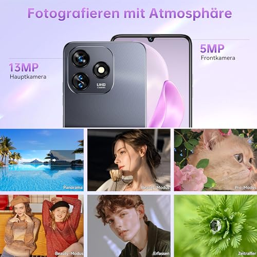 13MP Hauptkamera + 5MP Frontkamera:Das OUKITEL C51 Smartphone ist mit einer 13MP Hauptkamera und einer 5MP Frontkamera ausgestattet, die Gesichtserkennung und den Beauty-Modus unterstützt. Egal ob bei starkem oder schwachem Licht, es können zufriedenstellende Fotos aufgenommen werden, um die wunderbaren Momente im Leben festzuhalten. Das OUKITEL C51 handy verfügt ungeachtet alledem über einen 360°-Panoramamodus, einen Nachtmodus, einen Profimodus und einen Porträtmodus, um Ihren verschiedenen Anforderungen gerecht zu werden.