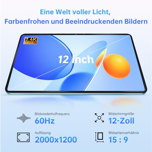 👑👑【12 Aufschlag Tablet 2.4K +7,5 mm Ultradünnes Design】Das OUKITEL OT5S Android Tablet 12 zoll groß verwendet einen 2.4K IPS Bildschirm mit Augenschutz. Das Bildschirm-zu-Körper-Verhältnis von bis zu 81 % sorgt für ein breiteres Sichtfeld. Das OUKITEL OT5S Gaming Tablet verfügt über ein ultradünnes 7,5 mm starkes Design aus Titanlegierung mit Nano-Spritzguss, angenehm zu halten und leicht zu tragen. Das 12 Aufschlag Tablet unterstützt auch Widevine L1, sodass Sie jederzeit 1080p-HD-Videos ansehen können!