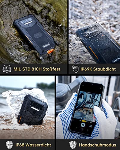 [IP68/IP69K & MIL-STD-810H] OUKITEL WP23 ist ein Outdoor Smartphone mit hervorragendem IP68/IP69K-wasserdicht, staubsicher und schocksicher. Das Mobiltelefon besteht aus Gummimaterial auf den vier Seiten des Mobiltelefons. Da das Gummi -Design auf den vier Seiten mit der Kombination von Metallrahmen kombiniert wird, um das Telefon wie einen Autostoßfänger zu schützen, ist das Telefon besonders resistent gegen Kollision. Dieses solide Telefon ist eine ideale Wahl für Entdecker, lange Distanzfahrer, Outdoor Arbeiter usw.