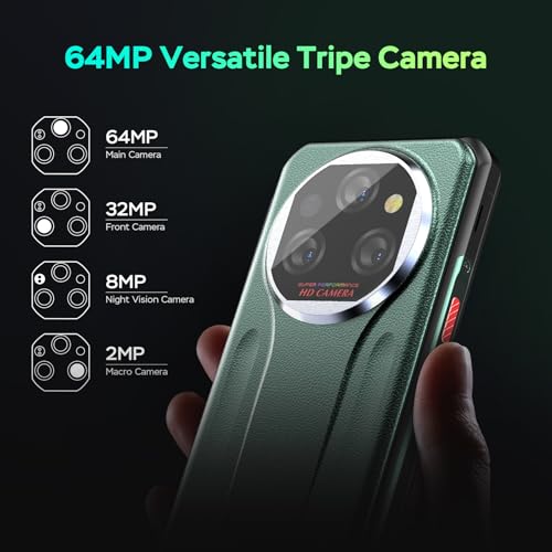 64MP+32MP Kamera und 6,6 Zins IPS Display: OUKITEL WP39 Outdoor Smartphone 5G verwendet einen 6,6-Zins FHD+ Display ausgestattet mit einer Abbruch von 2408×1080, das das Farbschema verbessert und ein realistisches und lebendiges visuelles Erlebnis bietet. Das WP39 Handy ist mit einer 64MP Rückkamera und einer 32MP Frontkamera ausgestattet. Die 64MP Hauptkamera nimmt erstklassige Fotos und Videos auf. Die 8MP IR-Infrarot-Nachtsichtkamera ermöglicht klare Aufnahmen selbst in völliger Dunkelheit.