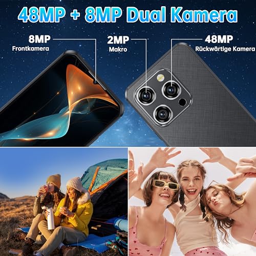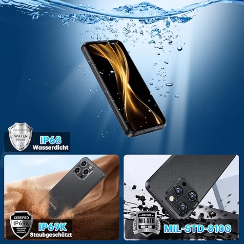 Android 14 & 16 GB+256 GB:Das OUKITEL WP52 Outdoor Smartphone ist mit 16GB RAM (4+12) und 256GB ROM (2TB Erweitert) ausgestattet und bietet somit viel Speicherplatz, um ein reibungsloseres Multitasking zu gewährleisten. Das Android 14-System fügt zusätzliche Datenschutz- und Sicherheitsfunktionen hinzu, die die Systemgeschmeidigkeit ergänzen. Außerdem ermöglicht es eine bessere Administration von Hintergrundprozessen und Speicherverwendung, was die Leistung und Akkulaufzeit erhöht