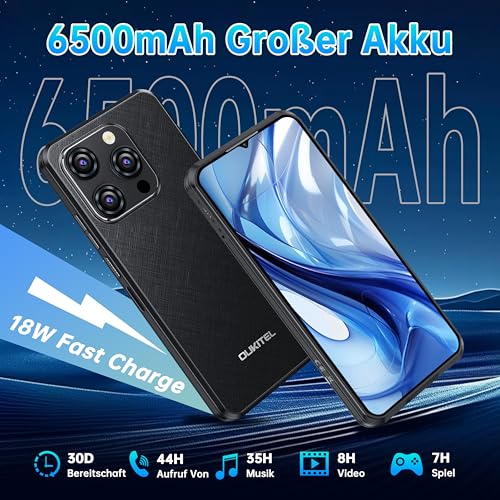 6500mAh Großer Akku & OTG: Das OUKITEL WP52 Outdoor handy ohne vertrag ist mit einem 6500mAh Hochleistungsakku ausgestattet und unterstützt 18W Schnellladung, um Ihre Bedürfnisse auf langen Reisen zu zu Ende führen. Das OUKITEL WP52 Baustellen handy bietet 30 Tage Standby-Zeit, unterstützt 44 Stunden Sprechzeit und 8,5 Stunden Videowiedergabe. Es unterstützt bekannt als OTG-Reverse-Charging, sodass Sie in Notfällen andere elektronische Geräte aufladen können