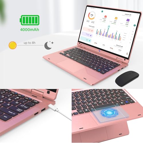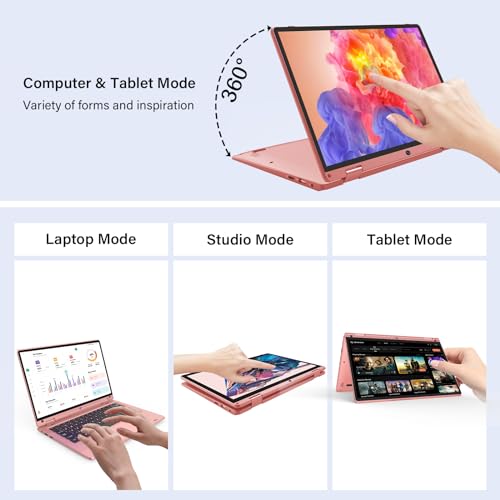 ✅【Touchscreen & 360° Faltbar】Laptop unterstützt Touch-Funktionen und kann in den Tablet-Modus umgewandelt werden. Um maximale Haltbarkeit zu gewährleisten, wurden die präzisionsgefertigten Scharniere dieses Notebooks 20.000 Mal getestet und ermöglichen das Öffnen und Herleiten sowie das Falten um bis zu 360°. Aktivieren Sie im Tablet-Modus die seitliche Tastatursperrtaste, um zu verhüten, dass die hintere Tastatur versehentlich berührt wird.