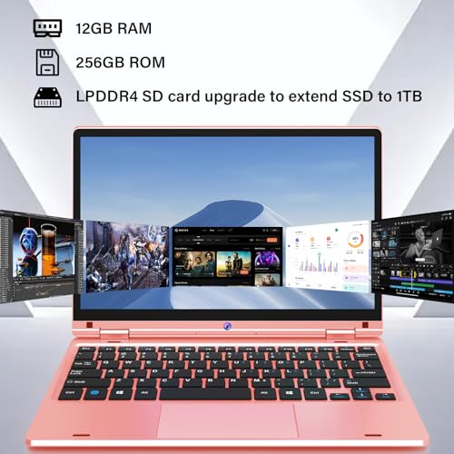 OUZRS Notebook 12 GB RAM 256 GB SSD, Computer Win 11 Pro Celeron 2,8 GHz, Notebook 12 Zoll FHD-Display, 1366 x 800 IPS, 2,4G/5G WiFi, Gaming Laptop Mini HDMI Bluetooth 5.0, PC Laptop mit Maus