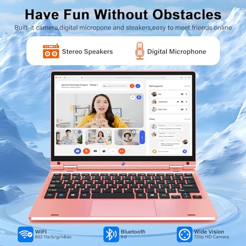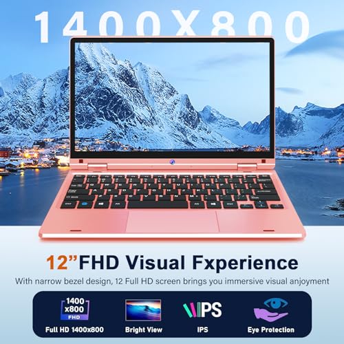 ✅【Komfortables visuelles Erlebnis】Dieses Netbook verfügt über einen 12 Aufschlag (39,6 cm) HD-Bildschirm mit 1366 x 800 IPS-Display, der die Farbe schöner und reicher macht und das Vergrößerung zarter und realistischer macht. Laptops ermöglichen es Ihnen, Videos anzusehen und im Internet zu surfen, für ein lebendigeres und unterhaltsames Erlebnis mit besserer und schärferer Qualität, kann sattere Farben und eine raffiniertere Bildqualität haben.