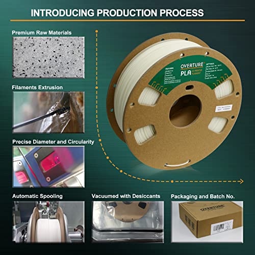 Komfortables Druckerlebnis: Overture3D Filament ist so konzipiert, dass es mit einer Vielfältigkeit von 3D Druckern kompatibel ist und sich im Gegensatz dazu für jedes Auflage Setup eignet. Der konstante Durchmesser und die Toleranz des Filaments Acht geben eine reibungslose Extrusion, sodass Sie mühelos korrekt und detaillierte Ausdrucke erzielen können.