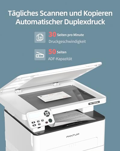 PANTUM M6700DW Drucker Scanner Kopierer, Laserdrucker Multifunktionsgerät, WLAN/USB/Ethernet, Schwarz Weiss, Automatischer Duplexdruck, 30ppm, Inklusive 1000-Seiten-Starter-Tonerkassette