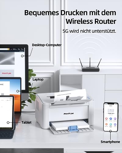 Laserdrucker durch WiFi-Publikation unter anderem PANTUM-App: Der Laserdrucker unterstuitzt WiFi.3Druck unter anderem kann uber die PANTUM-App von einem mobilen Gerat sämtliche gesteuert unduberwacht werden