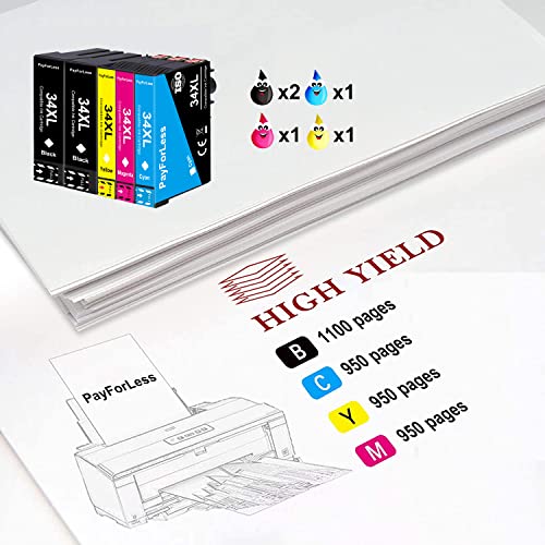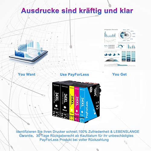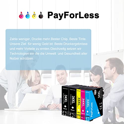 PayForLess 34 34XL Druckerpatronen kompatibel für Epson Workforce Pro WF-3720dWF WF-3725DWF WF-3720 WF-3725 Multipack 5er-Pack 2 Schwarz 1 Cyan 1 Magenta 1 Gelb…