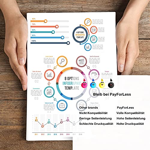Hohe Seitenausbeute statt dessen :1100 Seiten statt dessen 34XL Schwarz Tintenpatronen, 950 Seiten statt dessen 34XL Farbe Tintenpatronen. (Anliegend 5% Deckung)